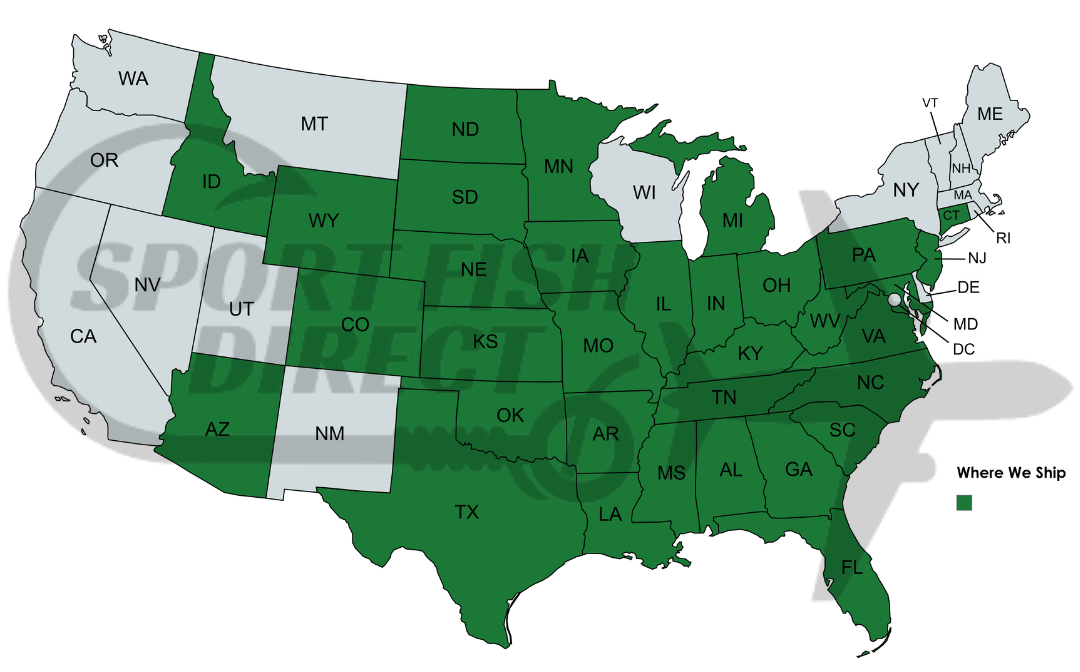 We're licensed and permitted to ship live fish to 33 states (and counting.) Don't see your state yet? Check back soon!